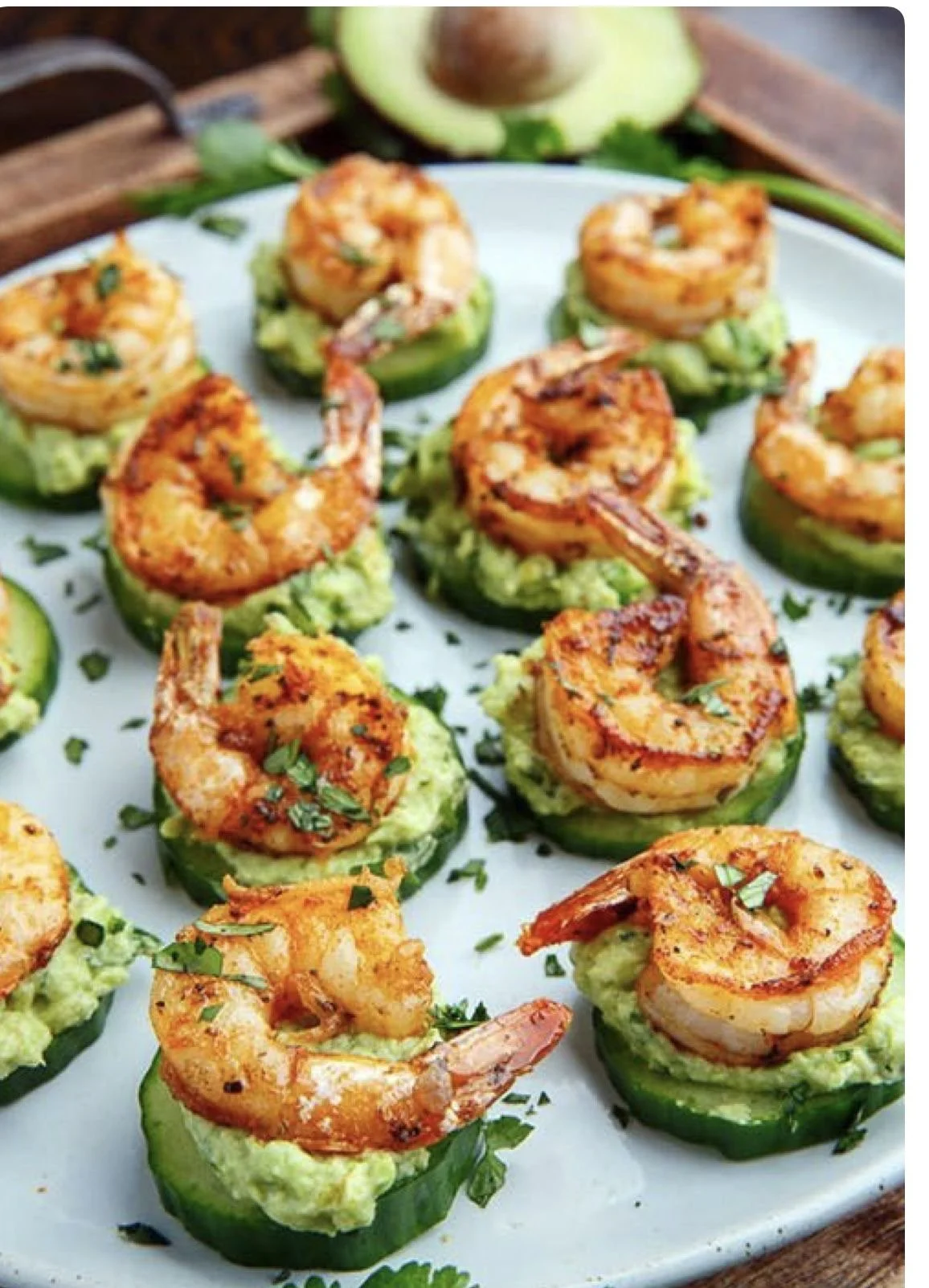 Goodness gracious on a plate: Blackened Shrimp Avocado Cucumber Bites! A great tapa for dining with friends...